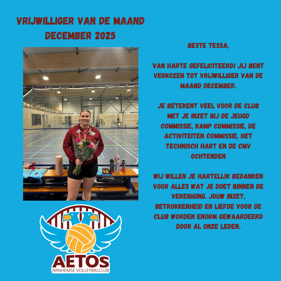 Beste Tessa, Van harte gefeliciteerd! Jij bent verkozen tot vrijwilliger van de maand december.