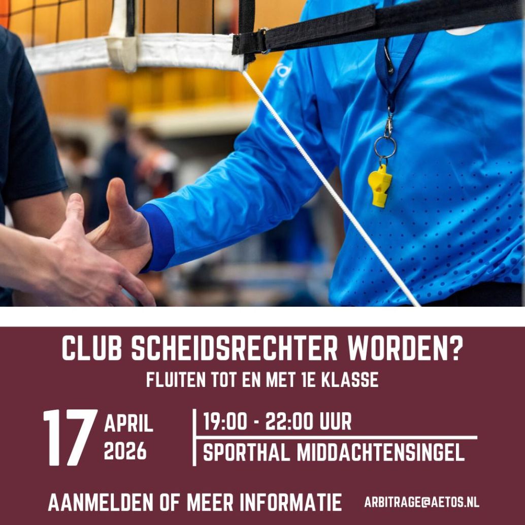 Op 17 April 2026 in Sporthal Middachtensingel krijg je meer informatie hoe jij Club scheidsrechter kan worden.